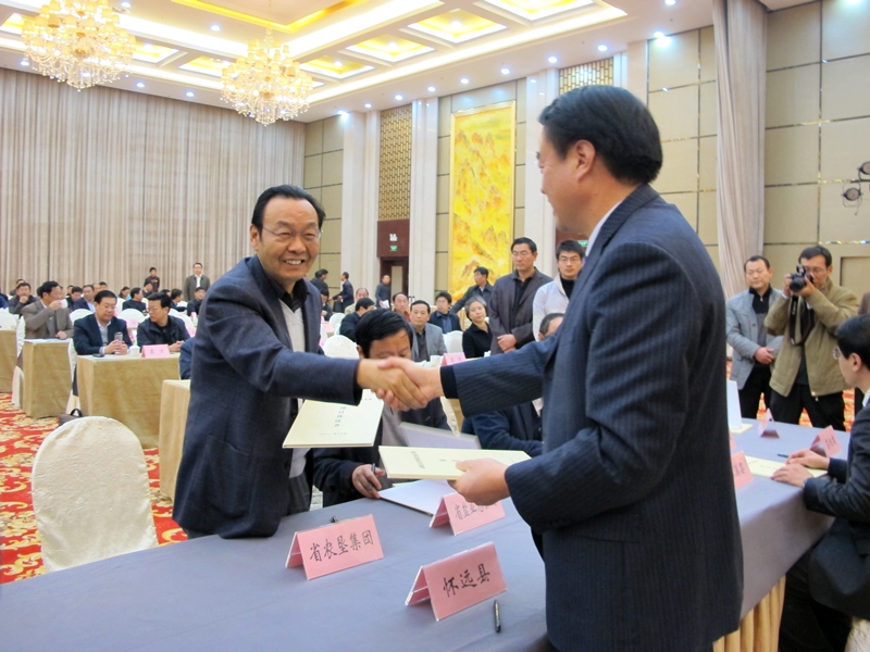 11月25日下午,省国资委在合肥召开安徽省省属企业支持皖北地区发展工作会议。副省长黄海嵩出席会议并讲话,省直各有关部门领导以及皖北三市七县和各省属企业主要负责同志参加会议。李卓民总经理应邀参加会议并代表省农垦集团与宿州市、怀远县签订战略合作协议。