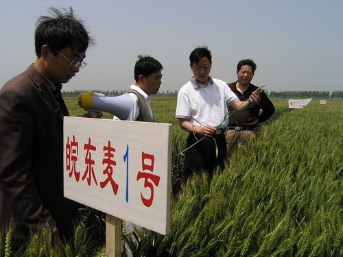 滁州市2007年午季形势分析、品种观摩及水稻产业提升行动实施情况汇报会于5月17日上午在潘村湖农场召开。滁州市农委负责同志和全市各市县区农委分管主任、种子管理站站长及大圹圩农场、潘村湖农场负责同志共50多人参加了会议。与会人员先后现场观摩了农场种子加工基地、小麦种子试验田、播量为5斤的稀繁田和种子生产大田,对田间小麦长势赞不绝口。