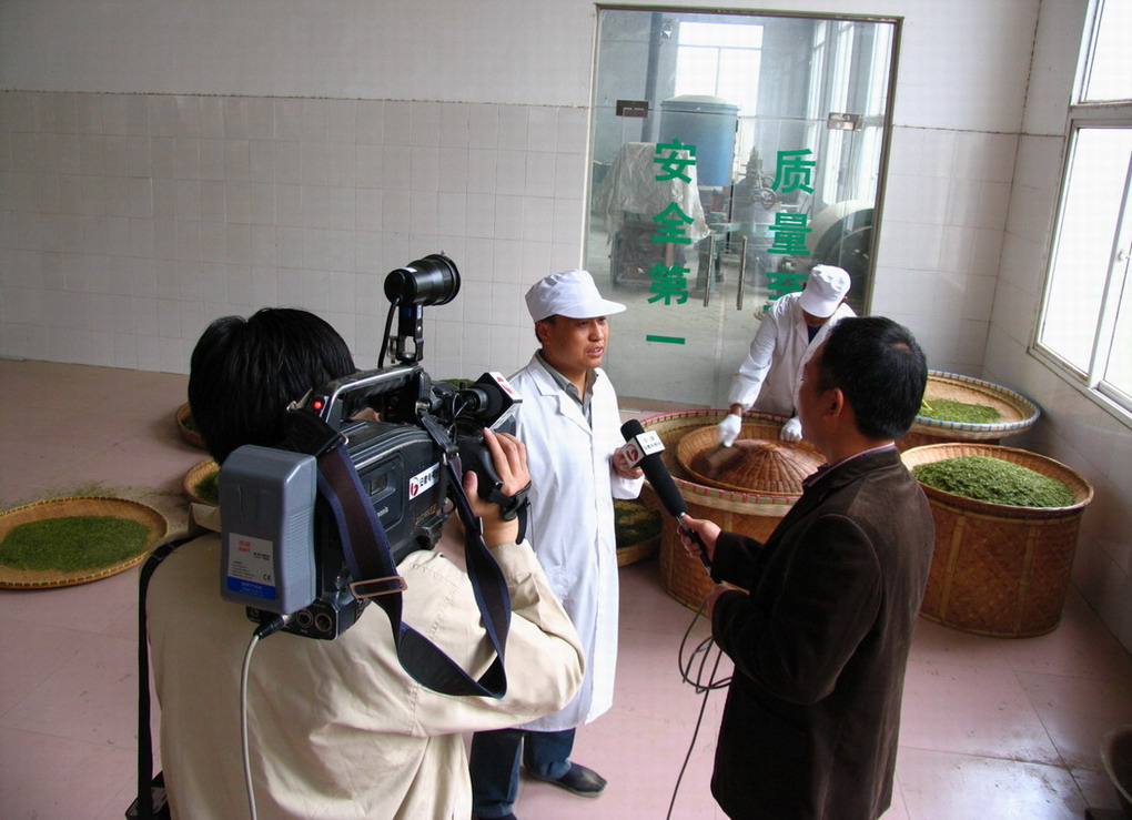 4月9-10日,安徽电视台安徽农垦集团《安徽新闻联播》栏目组一行四位记者,到皖垦茶业集团采访春茶生产。清明时节,皖南春光明媚,“江南诗山”敬亭山杜鹃胜火,茶香醉人。在皖垦茶业集团敬亭山茶场,采访组先后深入茶园田间和生产车间,拍摄历史文化名茶“敬亭绿雪”的采茶和制作场景。在敬亭绿雪原生茶园、敬亭绿雪公司清洁化生产车间和茶林间作的生态茶园白茶基地,记者们兴致盎然,流连忘返,摄下了一组组美丽而珍贵的镜头。摄制组还现场采访了绿雪公司负责人及前来采购敬亭绿雪的客商等,重点采访和拍摄了敬亭绿雪产品质量追溯流程情况。
