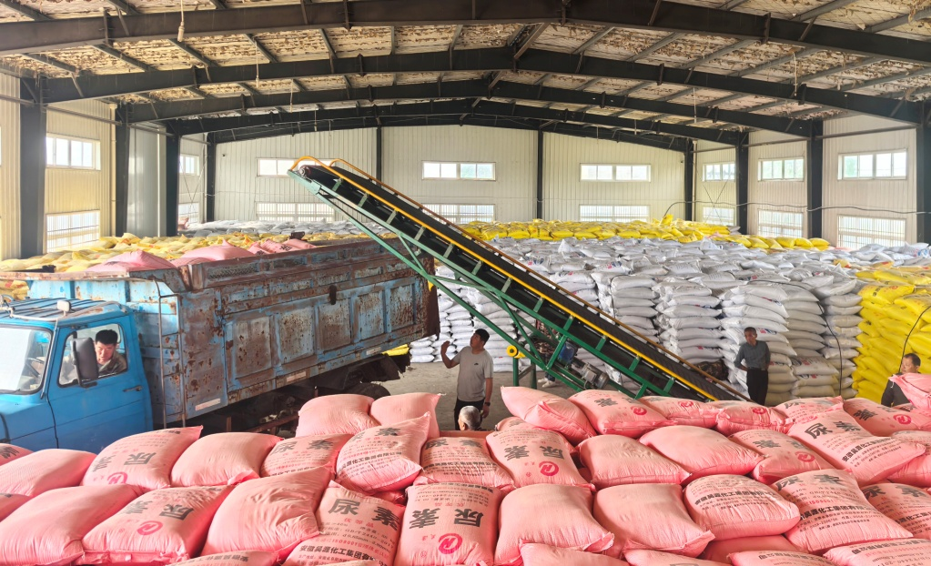 寿西湖社会化服务中心向“万亩片”提供农资(吴志宝 摄)