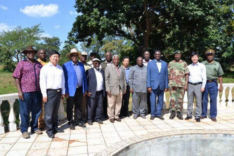 422津巴布韦国防部长Sekeramayi先生偕常秘、国防军司令、陆军司令、西马绍兰省省长等政要视察了安徽农垦皖津公司,与皖津公司经营层举行工作会谈并合影留念。